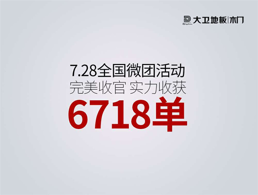 如今微信火爆程度不言而喻,刷朋友圈看公众号已经成为了日常,而其也成为了企业品牌宣传的利器。华体会网页版(中国)紧跟市场潮流趋势,抓住机遇,7月28日晚上19:00-21:00,华体会网页版(中国)地板|木门|全屋定制全线让利,20周年感恩回馈,大品牌,亲民价。在华体会网页版(中国)总部与全国经销商伙伴的通力合作下,7.28全国微团活动完美收官,截止21:00,华体会网页版(中国)实力收获6718单!这是华体会网页版(中国)2018开年以来,继华南、华东、北区、西南+华中之后的又一场微团大胜!