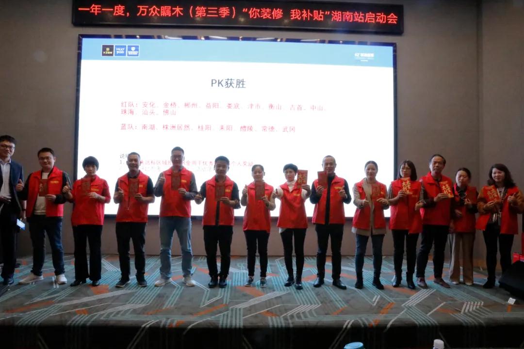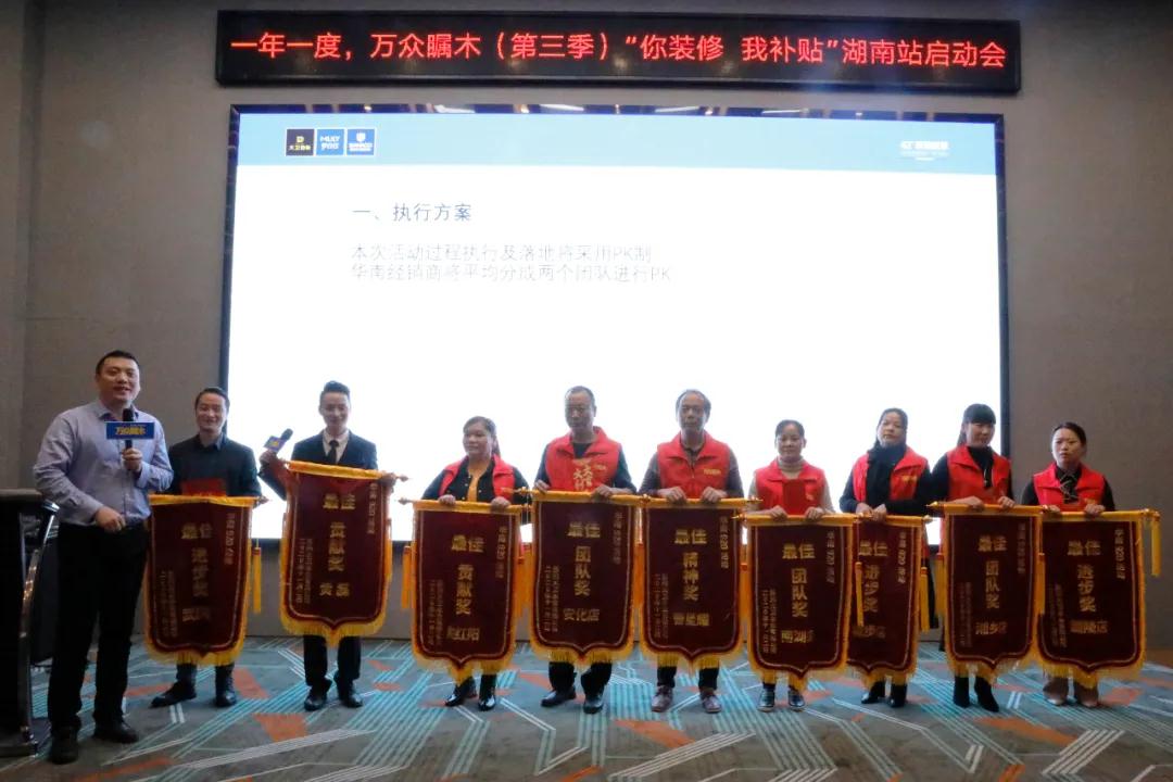居然之家湖南江西分公司副总经理董云武,板川电器销售部副总余铭先生、板川电器主动营销部总监伊兴栋先生、板川电器湖南分公司总经理丁华平、上海梦百合家居科技有限公司全国运营总监姬茂军、华体会网页版市场部总监陈乐新,共同上台完成万众瞩木(第三季)湖南站启动仪式。