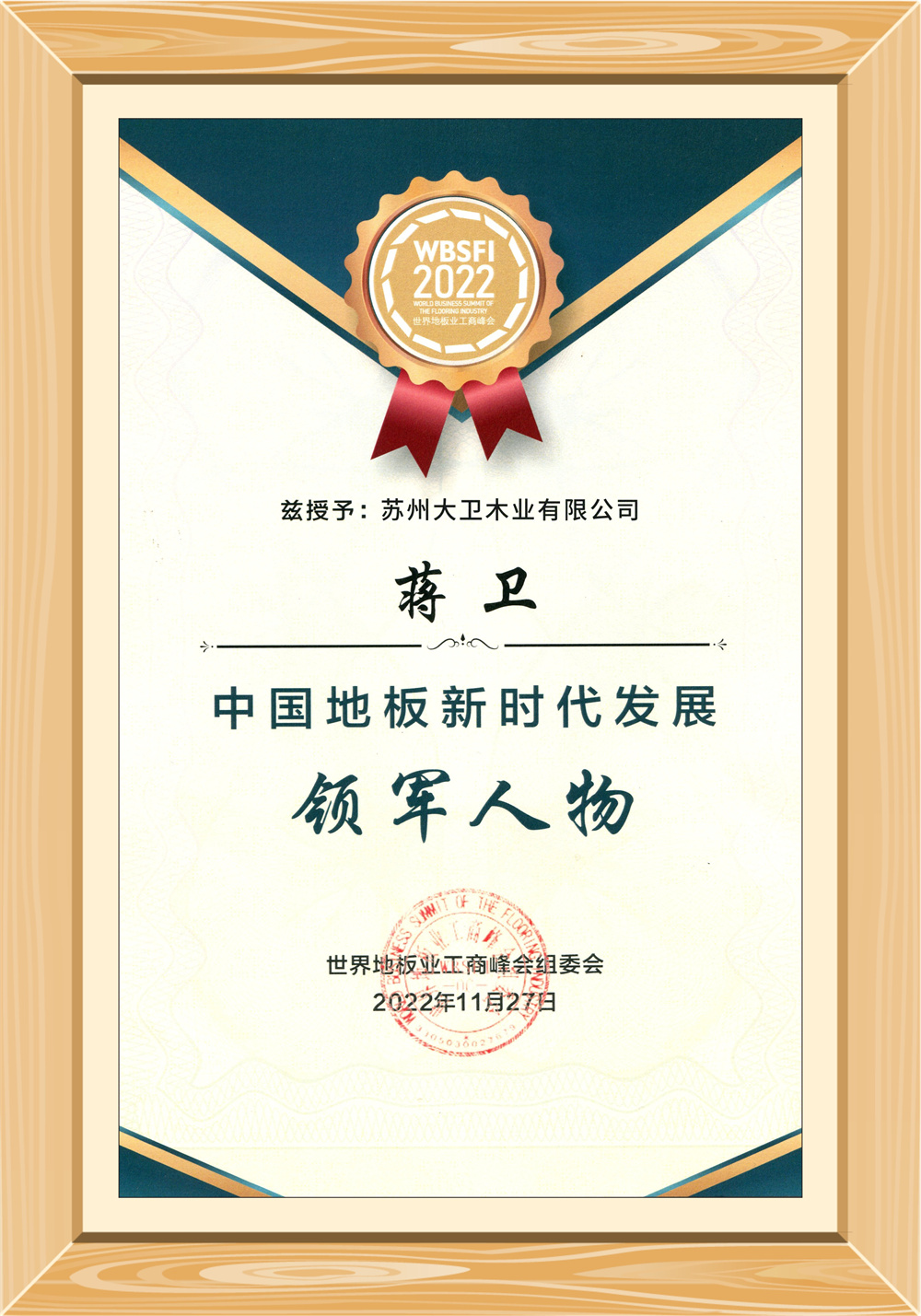 11月27日,“2022世界地板业工商峰会——中国地板新时代发展大会”在浙江南浔召开。华体会网页版(中国)地板被授予“2022世界地板业工商峰会金奖产品”的殊荣,董事长蒋卫荣获“中国地板新时代发展领军人物”称号,并受邀出席企业家论坛。本次峰会由中国林产工业协会、南浔区人民政府主办,参会嘉宾有中国林产工业协会会长王满、国家税务总局原副局长许善达、原国家质检总局工程师刘卓慧、商务部合作司、原商务参赞(正司级)陈林、中国消费者协会原秘书长杨竖昆、浙江省林业局一级巡视员吴鸿、中国林产工业协会代理秘书长陈天全、南浔区委常委、副区长陈晓等领导。峰会汇集了国内地板企业家、重点地板园区与生产聚集地管理部门负责人、全国地方地板协会负责人、房地产行业负责人,国内经济学家、高校科研学者等,围绕“初心、信心、进步、发展”主题展开对话,共同研讨重拾创业初心、保持艰苦奋进精神、树立坚定信心、谋局进步发展。